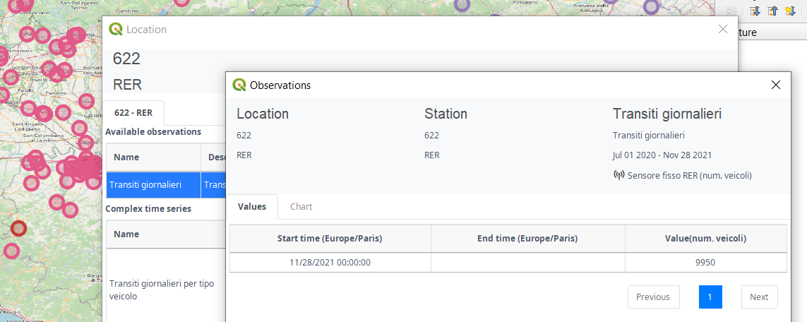 With the plugin installed, you can add a layer of type Sensortings via Layer > Add layer > Upload layer from remote server. Use for example the service of Comune di Ferrara, Italy. As soon as the sensor locations show on the map, you can select ‘Show location information’ tool from the plugin menu and select a sensor. And view or download the observations at that location.
